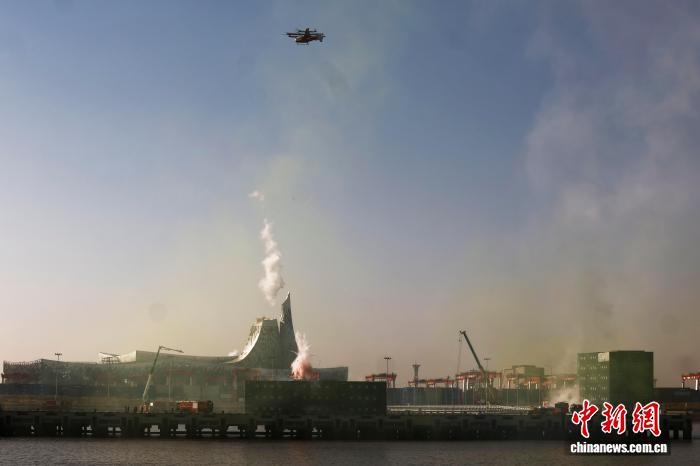 上海市警务航空队通讯指引机启铺空中侦查,协调指引调理,竣工空位联合。记者 殷坐勤 摄 练习训练模仿正在宝山区川思道28号的港区船埠散拆箱堆搁区俄然爆发“焚爆”,年夜水随同着浓烟宽沉遮盖瞅线,乃至曲交恐吓着现场开工功课职员战救助职员的性命平安,环境万分危殆。